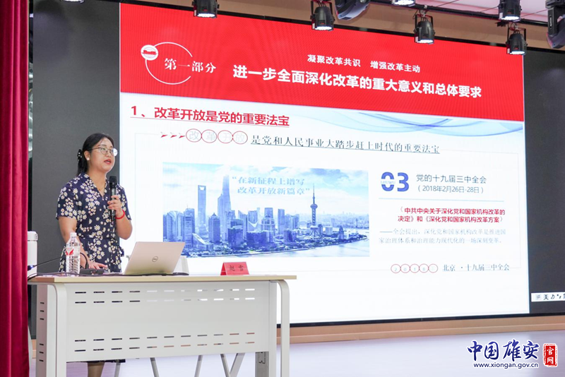 中国雄安官网9月5日电 为深入学习宣传贯彻党的二十届三中全会精神,进一步凝聚高标准高质量建设雄安新区的强大动力,雄安新区宣传网信局和容西管委会联合举办的“理响雄安 双争惠民”系列宣讲活动第31期在容西片区开讲。河北金融学院马克思主义学院副教授,马克思主义基本原理教研室主任、党支部书记赵雪作主题宣讲。