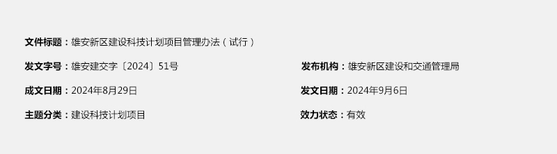 关于印发《雄安新区建设科技计划项目管理办法(试行)》的通知