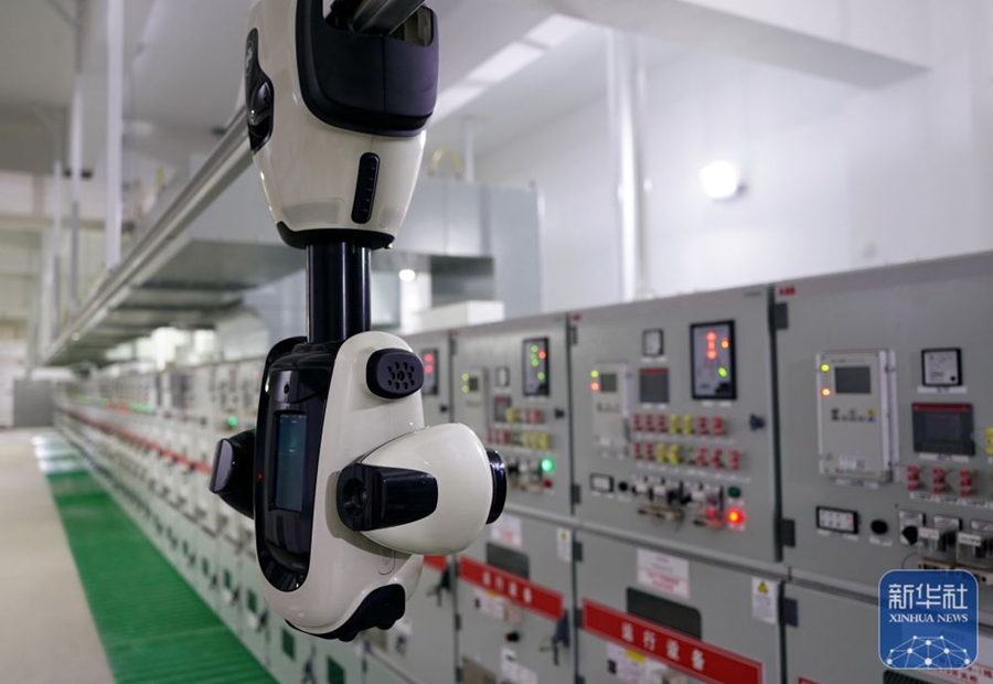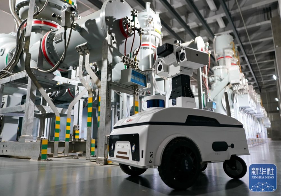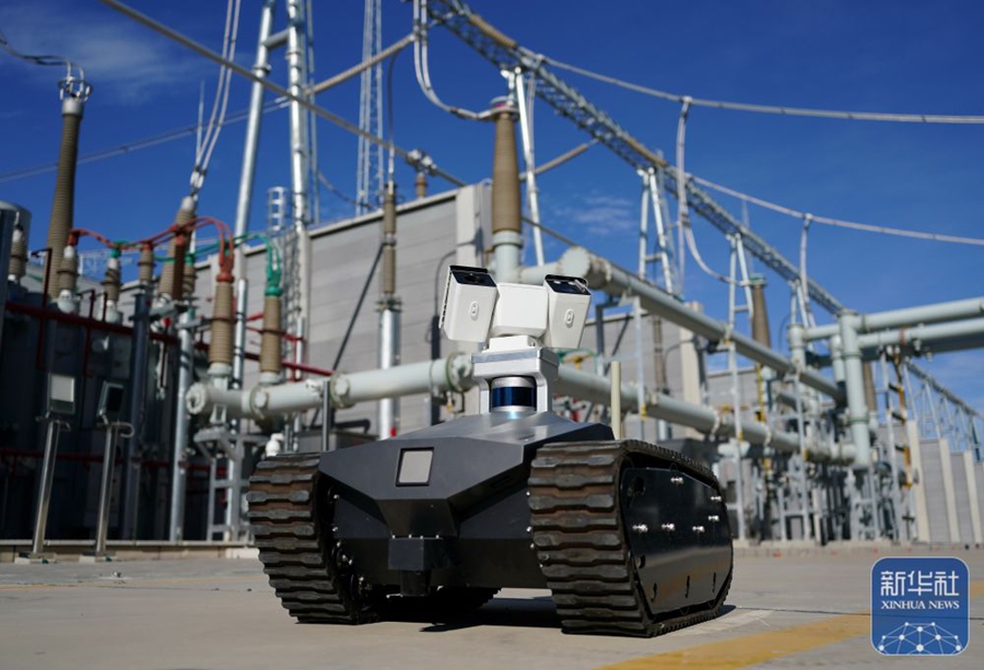 9月5日,智能机器人在河北雄安新区“智慧能源立方”——剧村220千伏变电站内巡检。