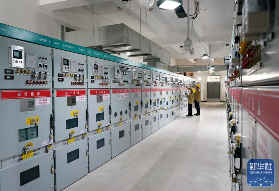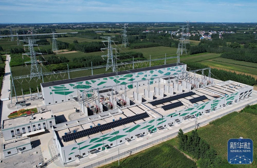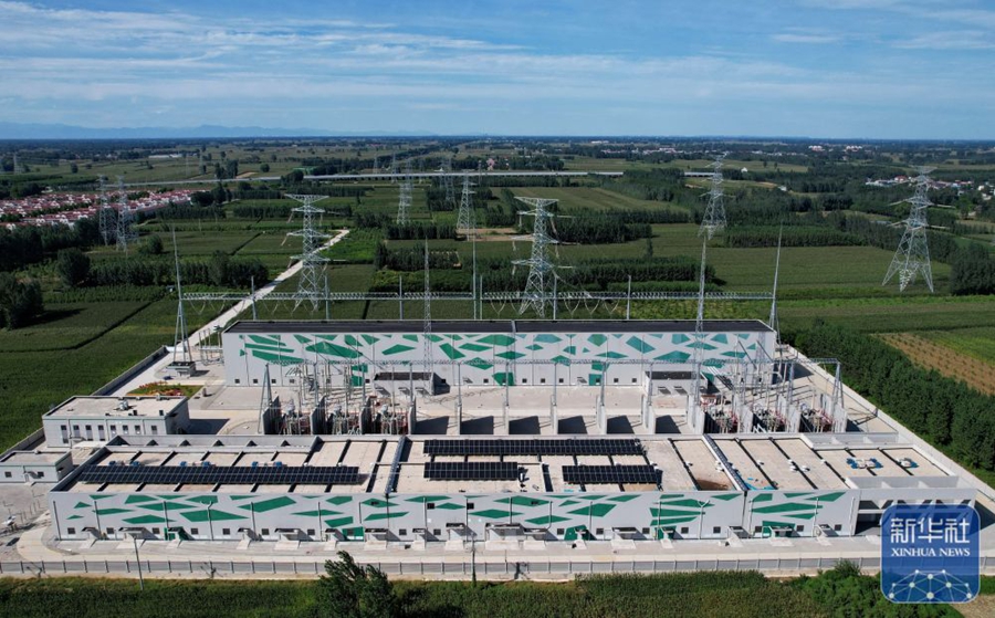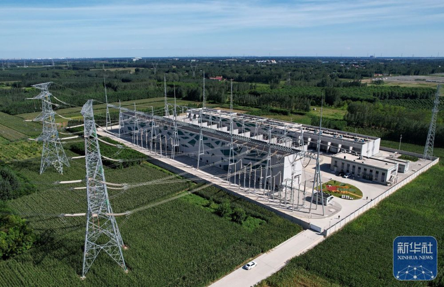 据国网河北雄安新区能源互联网建设管理办公室介绍,自2017年以来,雄安新区先后建成“蓬勃之树”——雄东500千伏变电站、“智慧能源立方”——剧村220千伏变电站、“山水城市”——昝西 220千伏变电站等七个主题变电站。投运张北至雄安特高压工程,实现“用坝上的风点亮雄安的灯”,建成雄安新区东北区域雄东至昝西能源输送主通道,为雄安新区建设提供源源不断的绿色电能。(新华社记者杨世尧摄影报道)