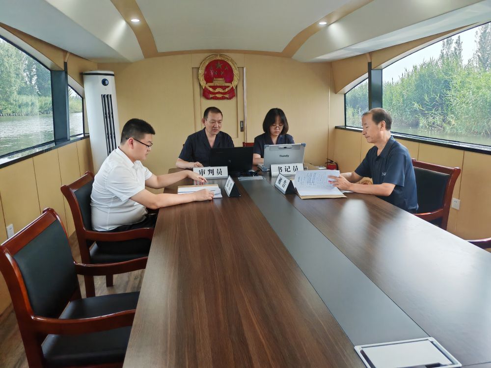 2023年8月,王家寨村曹某因宅基地纠纷诉至法庭,以其弟弟侵犯其宅基地使用权为由要求排除妨碍。由于双方的宅基地距离航道较近,法庭便将巡回审判船开到双方宅基地附近,并将双方分别叫到船上进行现场调解。经说服教育,被告立即将其物品清除,原告当场撤回起诉并领取撤诉裁定书。两个多小时的时间,一起纠纷,法庭以巡回调解的方式予以了结。