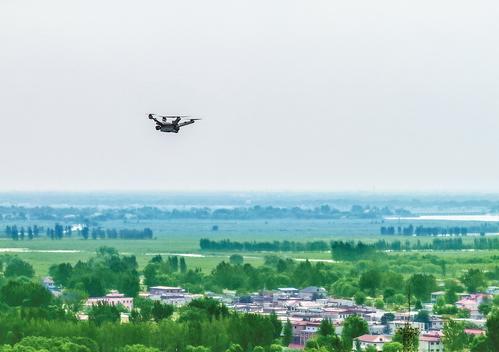 9月4日,雄安新区安新县赵北口镇,无人机正在进行巡检。 记者李畅 摄