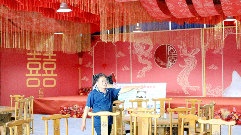 8月28日,大庄村党支部书记、村委会主任石炳启正在向“文明中国”主题采访报道组展示“红色礼堂”。该礼堂是在大庄村村委会旧址上改造,向大庄村及周边村庄的新人开放。新华网吕翔 摄