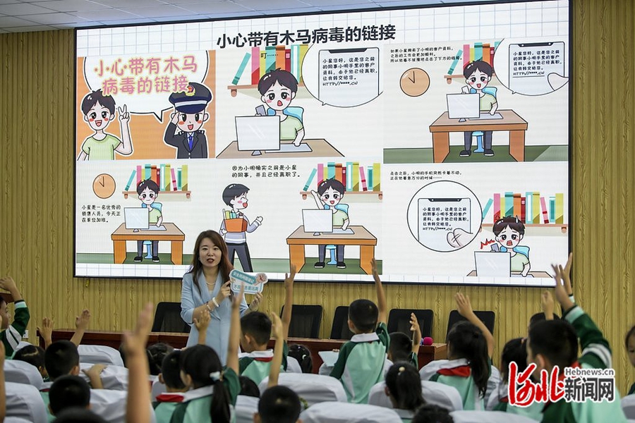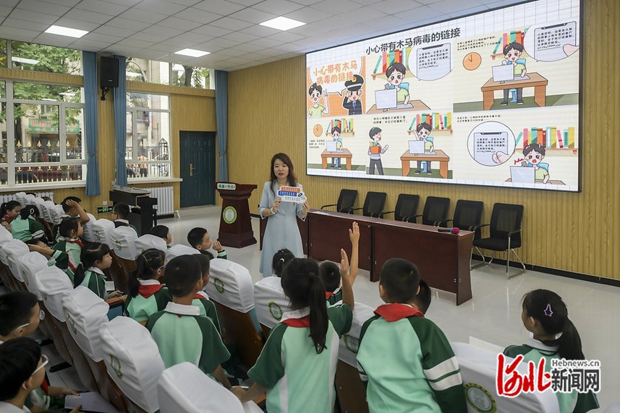 9月9日,承德市双桥区委网信办志愿者在竹林寺小学开展网络安全教育。