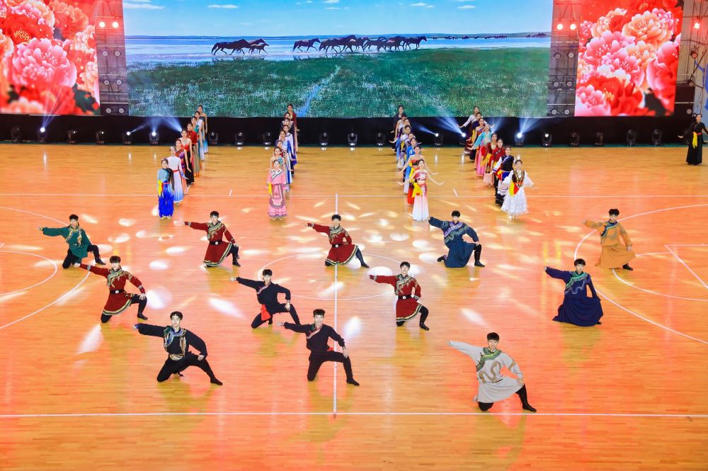 身着各族服饰的承德群众表演民族韵律舞《中华民族一家亲》。(受访者供图)