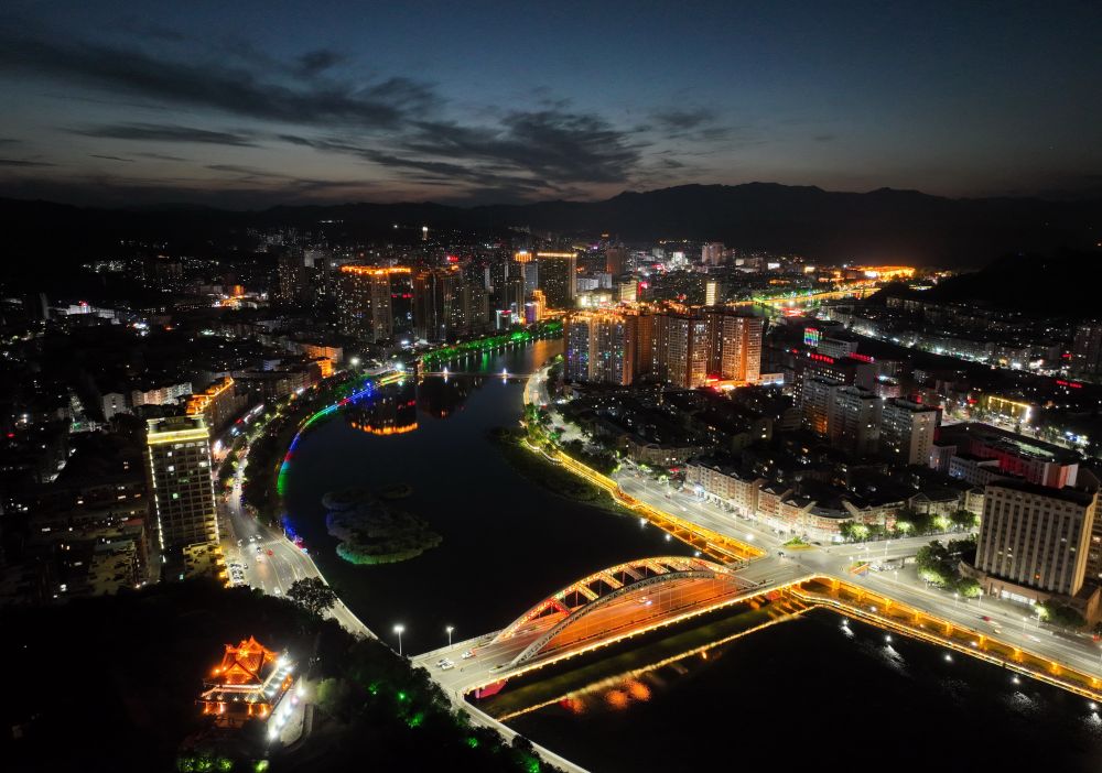 承德市武烈河沿岸夜景(无人机照片)。新华社发(王立群摄)