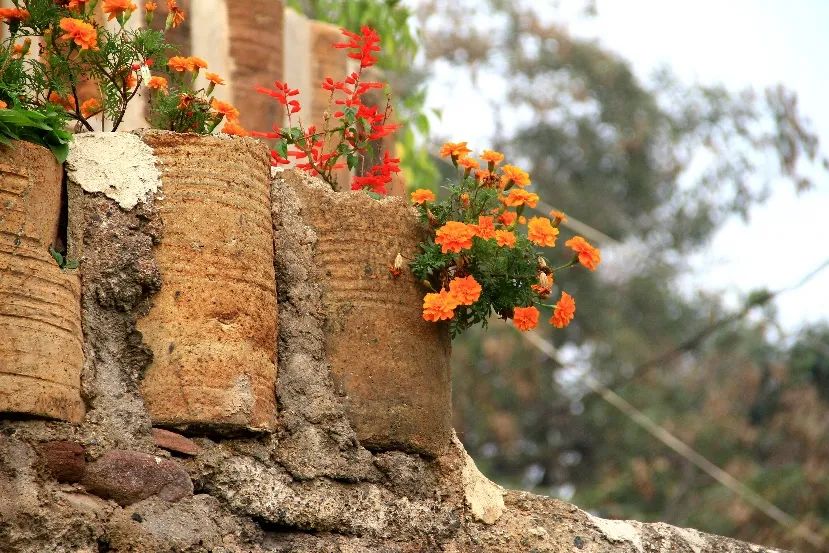 如今,南横口的乡亲把这些弃之不用的笼盔利用起来,精心地组合在一起,盖房垒墙,养花植树,铺路搭桥,使它们成为了当地陶瓷文化的一种符号。