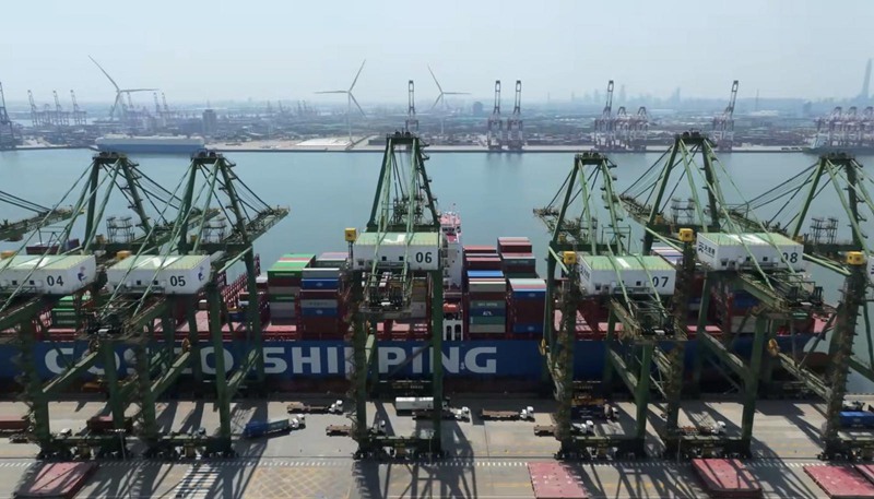 场内集装箱可以一次从无人集卡到达指定贝位,场内单小车岸桥的造价降低40%,重量减轻1000吨,一次着箱成功率由93.8%提升至95%……作为国家的核心战略资源、天津“一基地三区”的重要载体、首都北京的主要出海口,天津港效率的大提升直接为这片拥有集装箱航线147条,每月航班550余班,同世界上180多个国家和地区的500多个港口保持贸易往来的海上热土带来巨大的发展动力。公开资料显示,2023年,天津港集团完成货物吞吐量4.76亿吨,同比增长1.1%;集装箱吞吐量2217万标箱,同比增长5.5%,增速领先世界前十大港口,再创历史同期最好水平,展现了滨海新区追风逐日,奋力书写“海篇章”的一幕。