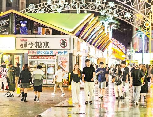 9月17日晚,石家庄火车头步行街灯火明亮,人流如织。中秋假期,石家庄市各消费业态吹响新一轮营销号角,围绕促消费推出新产品、新场景,大力活跃消费市场。记者 赵威 摄