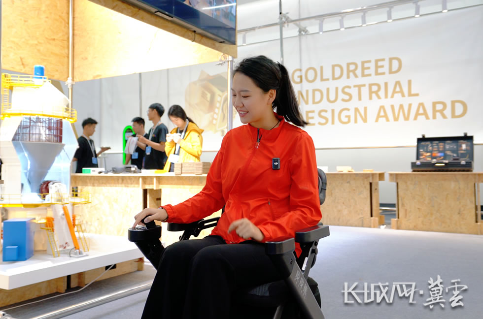长城新媒体记者体验2024第五届金芦苇工业设计奖入围终审作品电动轮椅。长城网·冀云客户端记者李征 摄