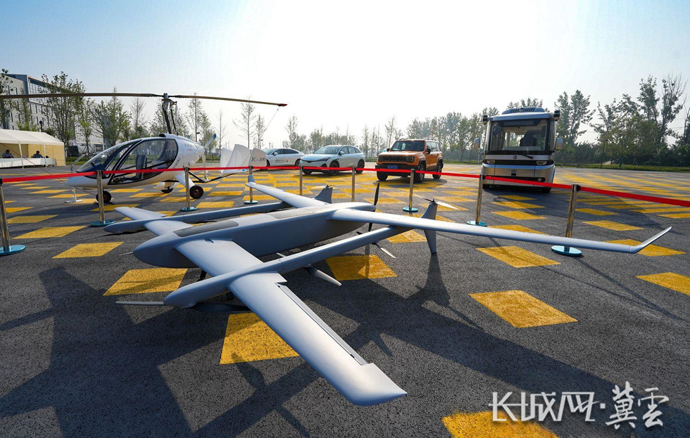 展览会上展示的无人机、小型飞机、无人驾驶汽车等展品。长城网·冀云客户端记者李征 摄