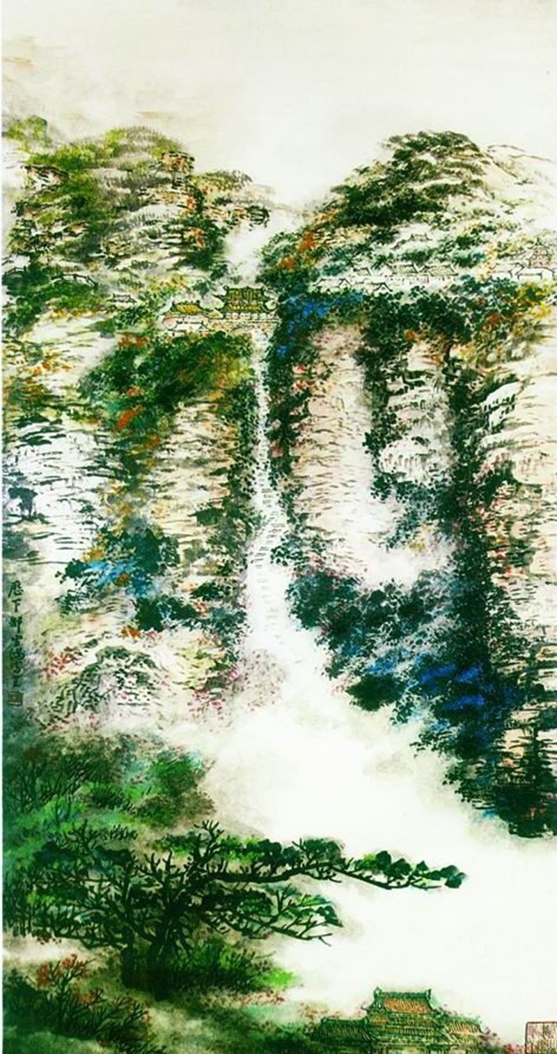 桥楼殿国画作品。郜雪鸿作