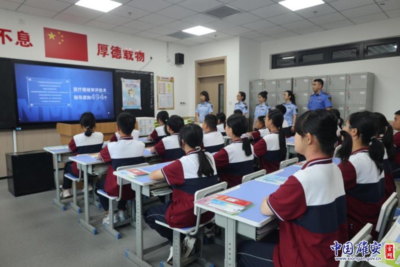 药安校园共建设。9月6日,雄安新区综合执法局联合容西管委会城市管理与综合执法处走进雄安容西容德初级中学,为学生们带来了一堂生动的“开学第一课”,重点讲解了药品、医疗器械及化妆品法律法规基本知识,发生药械妆不良反应/事件后处理方法及药物滥用常识。同时,通过观看科普视频、互动问答讲解,让学生们对药品安全有了更深入的了解和认识,激发了学生们对药品安全知识的兴趣和求知欲。