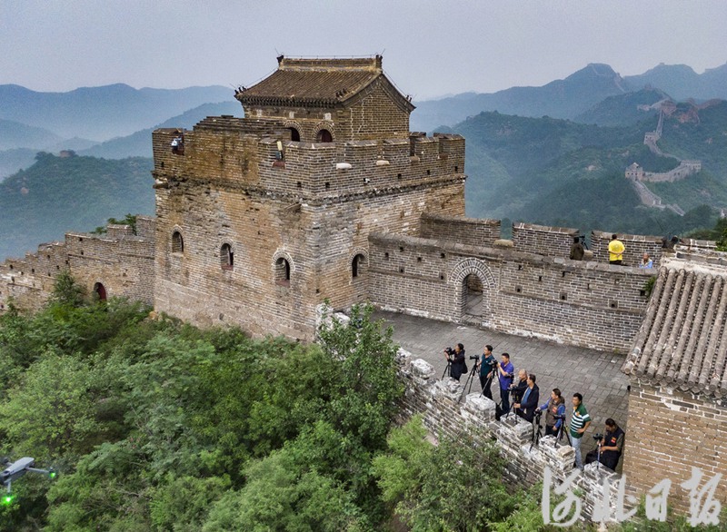 2023年9月6日,花楼沟村农民摄影师们在金山岭长城进行采风创作。河北日报记者田明摄