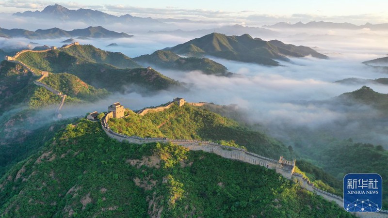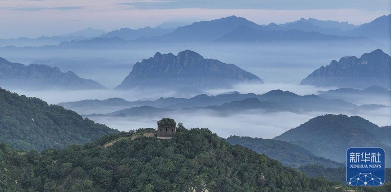 承德市滦平县金山岭长城云海(无人机照片)。图自新华社(周万平摄)