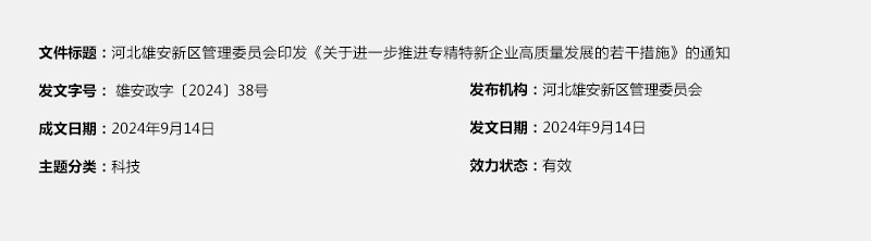 河北雄安新区管理委员会印发《关于进一步推进专精特新企业高质量发展的若干措施》的通知