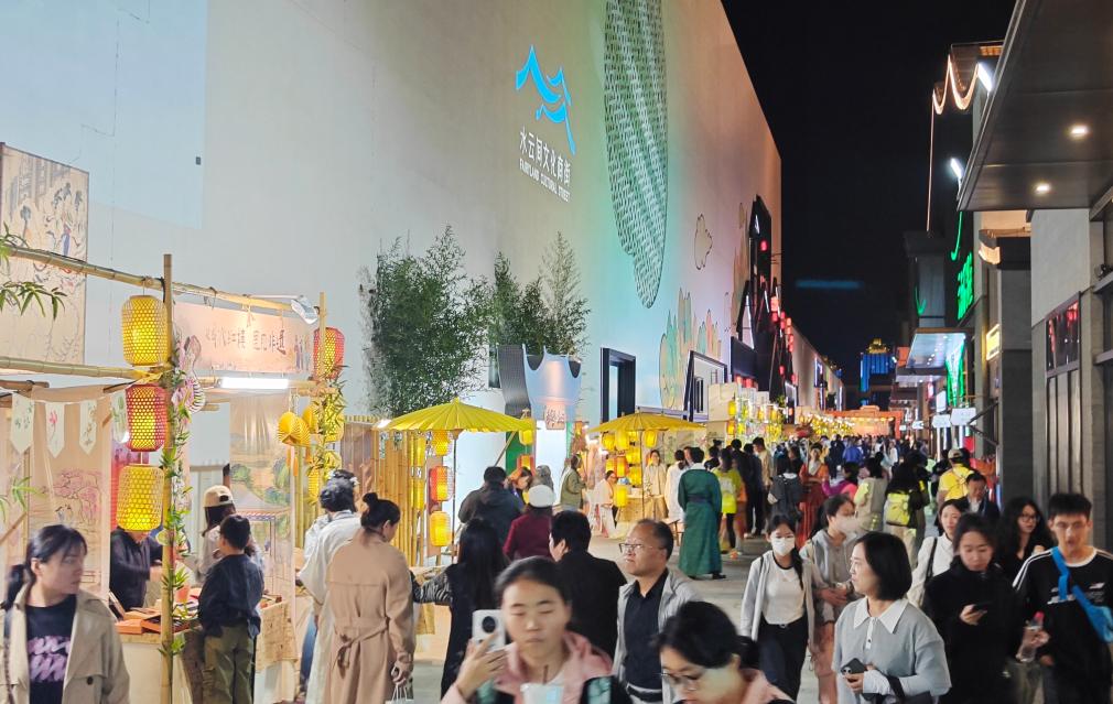夜晚,廊坊水云间文化商街游人如织。新华社发(刘向摄)