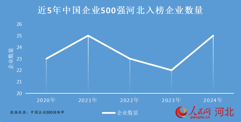 2024年,中国企业500强入围门槛再提升,达473.81亿元,较上年提升3.83亿元。但在今年的中国企业500强榜单中,河北却以25家企业入榜,打破了近5年入榜企业数量最多的纪录,位列2024年中国企业500强分省份排名第7名,超过福建、四川、湖北。