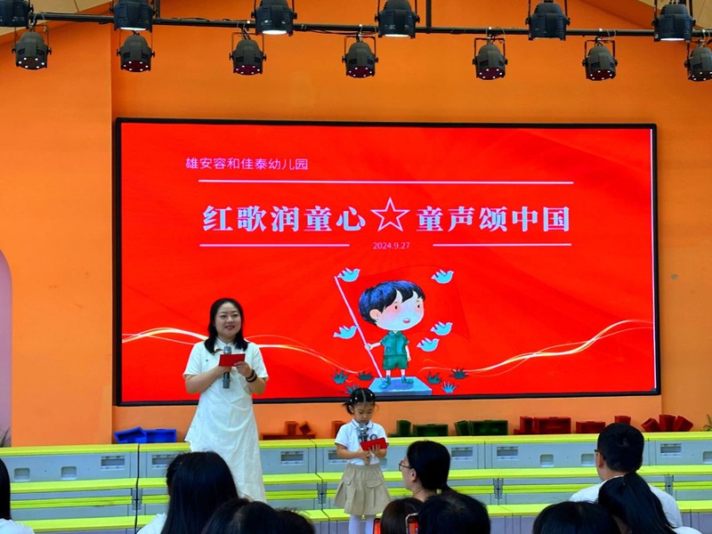 在国庆节即将来临之际,雄安容和佳泰幼儿园举办了一场别开生面的以“红歌润童心,童声颂中国”为主题的红歌活动,孩子们用稚嫩却充满热情的歌声为伟大祖国献上最纯真的祝福。