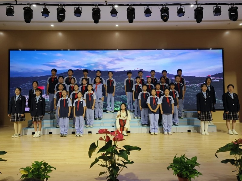 回忆烽火历程,感受岁月如歌,同绘山河锦绣,唱响祖国颂歌。一首首耳熟能详的红色歌曲,一幕幕齐挥红旗的高潮,一阵阵掌声雷动,让在场的每一位观众心潮涌动。歌声唱出了每个人心中的喜悦与感动,也唱出了美好的希望与理想。那份对祖国的热爱与敬仰、对民族精神的传承与弘扬,将永远铭记在同学们的心中,激励着他们不断前行,为祖国的繁荣昌盛贡献自己的力量。