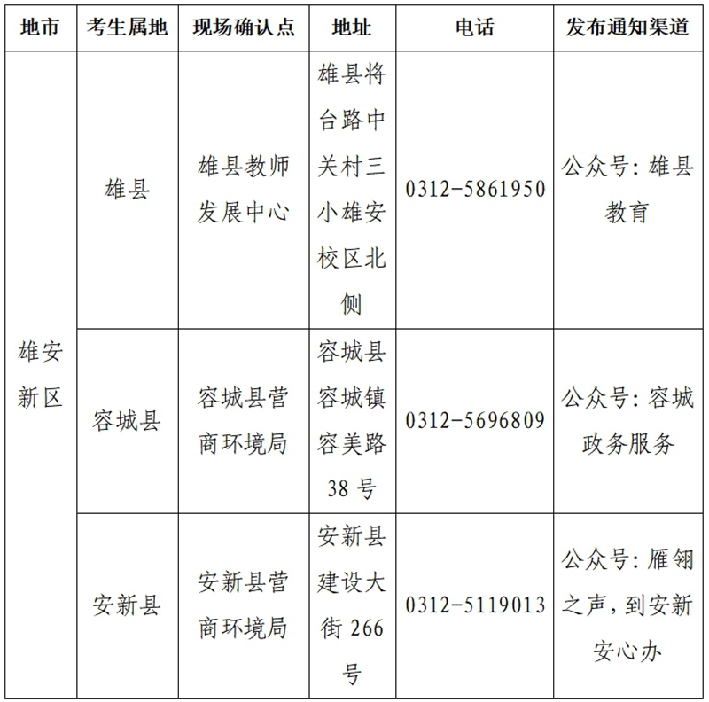 4.确认点:安新县营商环境局、容城县营商环境局,雄县教师发展中心。