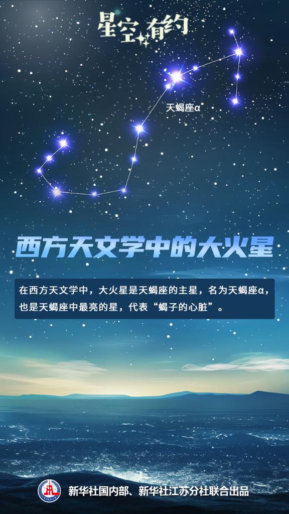 “由于大火星的亮度很高,我国古人将其作为确定季节的重要时间标志,并用来指导农业生产。”中国科学院紫金山天文台科普主管王科超说,早在先秦时期,我国古代先民就将黄昏时分大火星位于天空正南方作为夏至的标志。《诗经》中载“七月流火”,即指农历七月,天刚黑时可见大火星开始西沉,意味着天气将寒。到了冬季,大火星会完全蛰伏于地下。