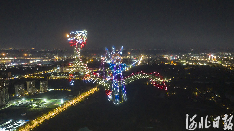 9月22日晚,2000架无人机点亮廊坊夜空,秀河北美景。河北日报记者田明 摄