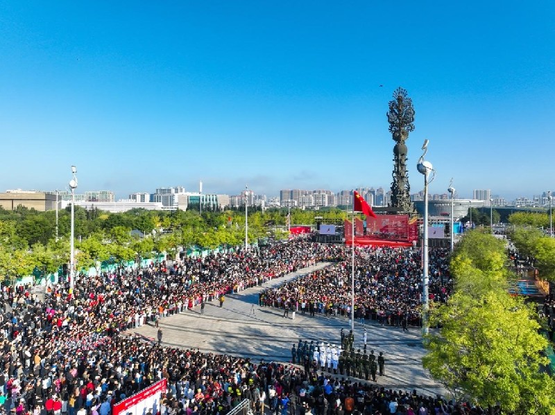 10月1日,唐山南湖景区举行升国旗仪式。唐山文旅集团供图
