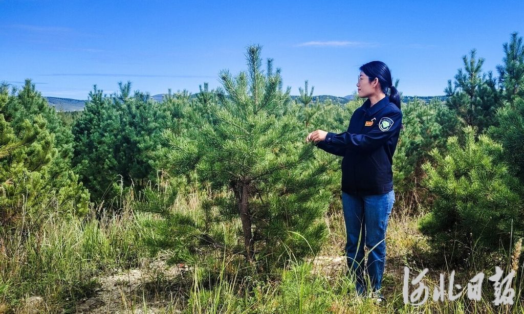 9月5日,塞罕坝机械林场“林三代”王雪萌查看树木长势。河北日报记者田明 摄