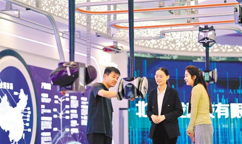 9月6日,雄安新区科创中心中试基地,北京普龙科技有限公司工作人员在介绍新型机器人。