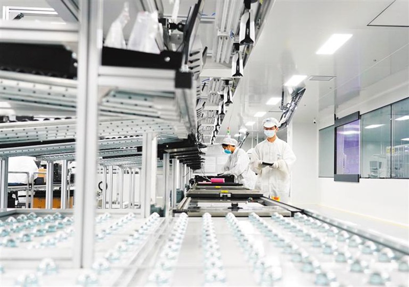 9月6日,雄安新区科创中心中试基地,雄安百信信息技术有限公司员工在服务器生产线上工作。