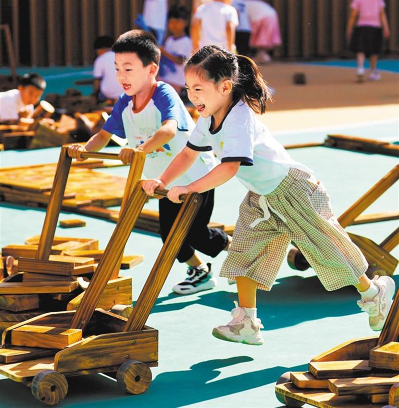 9月5日,容西临泉幼儿园的孩子们在做游戏。目前,雄安新区新建片区已建和在建学校达98所,开办学校51所,民众在家门口就能享受到优质便捷的教育服务。