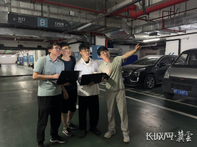 项目组成员在雄安新区地下停车场进行测试。长城网·冀云客户端记者康紫祎 摄