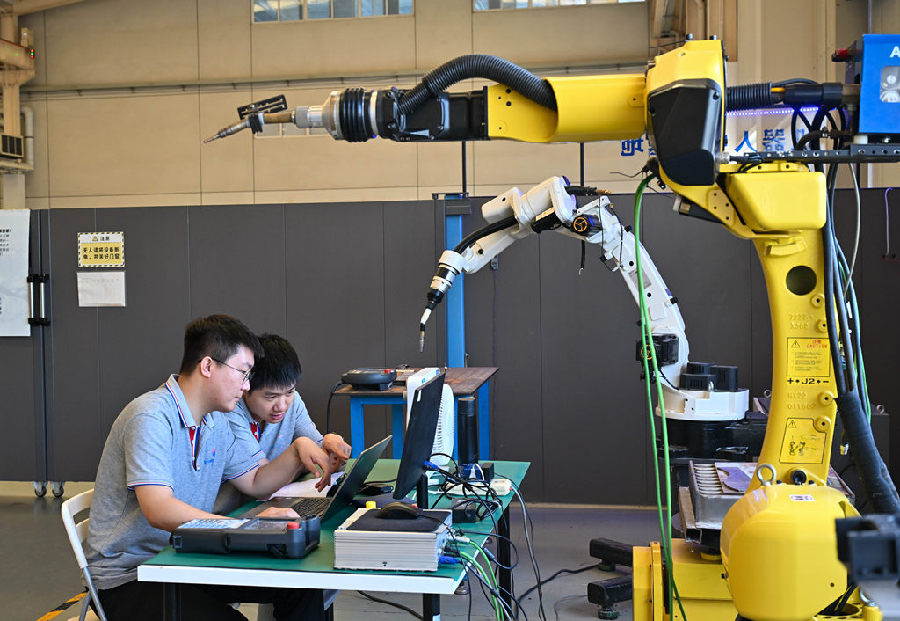 4月17日,中信重工开诚智能装备有限公司员工在调试机器人。河北日报记者赵杰 摄