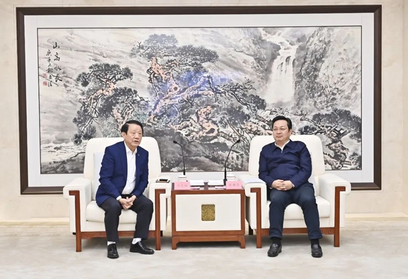 张国华与新加坡叶水福集团中国区企业发展执行总裁倪志根一行举行工作座谈。刘向阳 摄