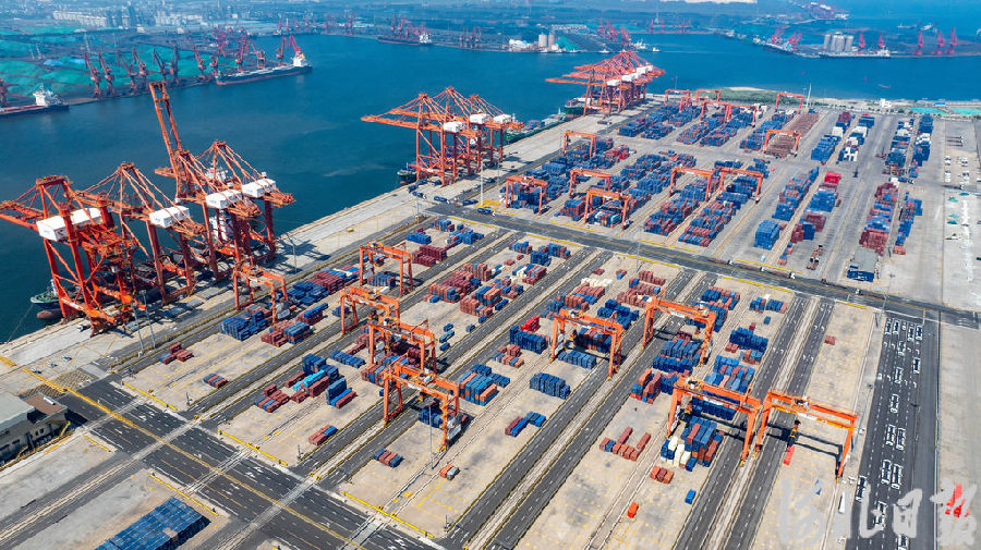 7月16日拍摄的唐山港京唐港区集装箱码头。河北日报记者赵杰 摄