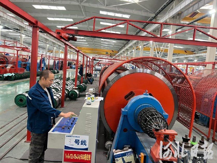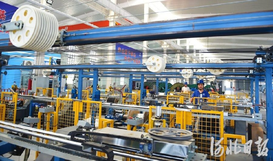10月18日,宁晋县贾家口镇高端智能制造产业园区内的泽楷线缆河北有限公司共享工厂内,拉丝、绞合、绝缘、成缆……各生产环节开足马力生产。