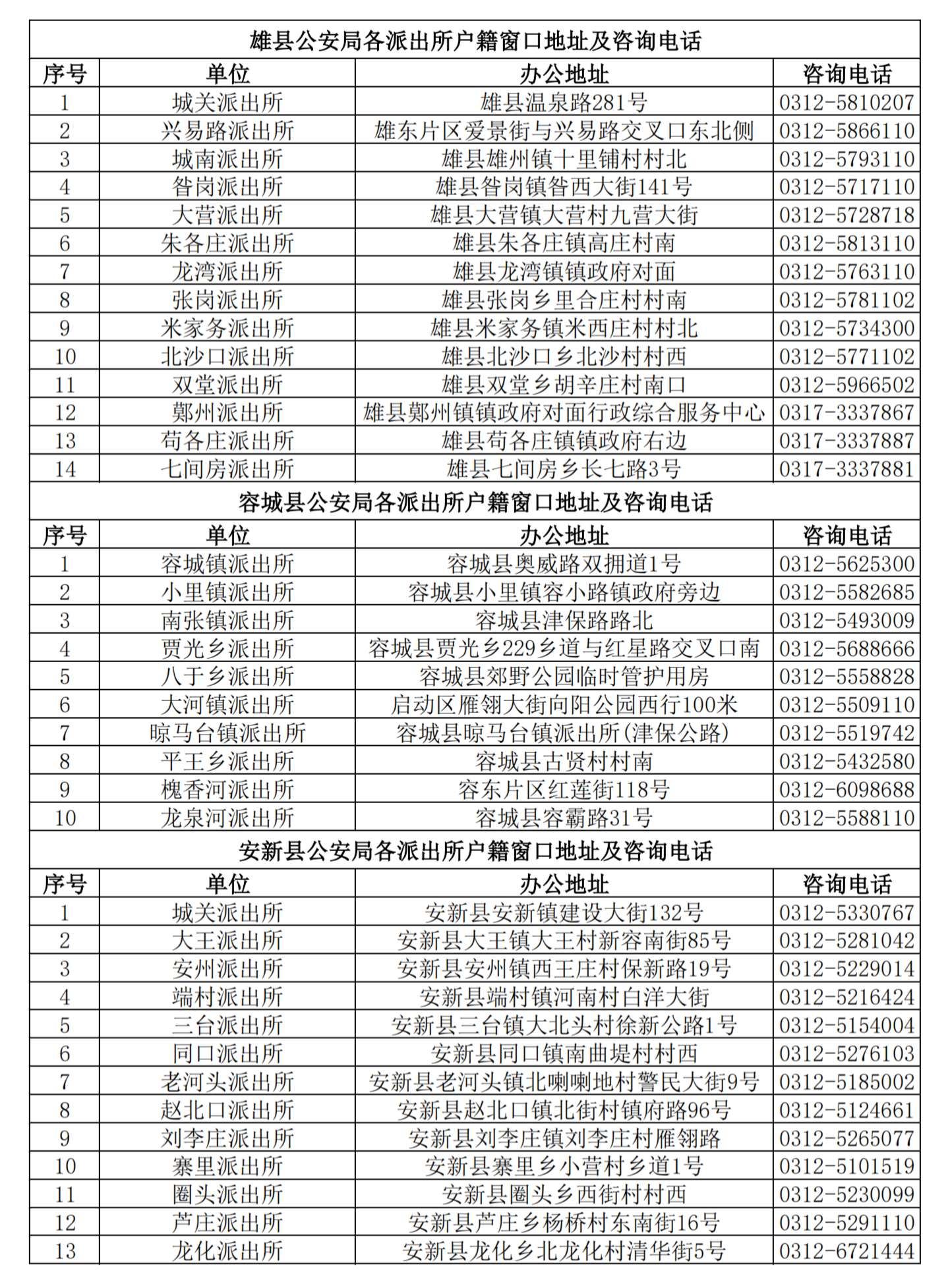 附件:雄安新区各派出所户籍窗口地址及咨询电话