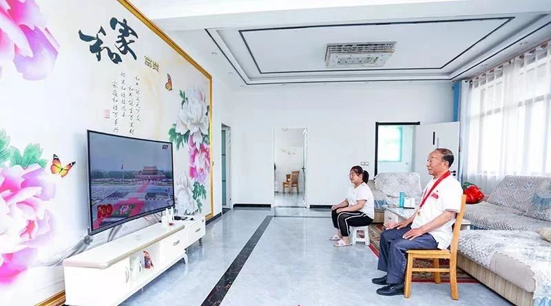 王璨爷爷王景茹和孙女一起观看国庆阅兵。
