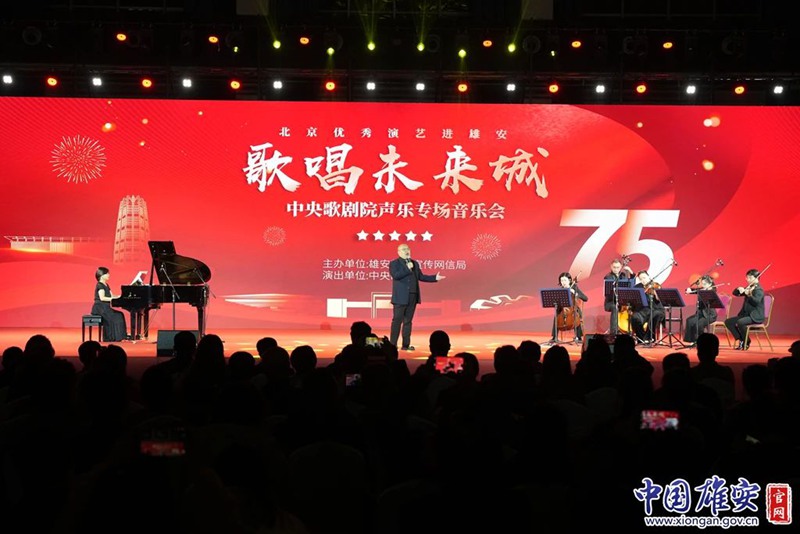 “歌唱未来城”中央歌剧院声乐专场音乐会共17个曲目,涵盖中外经典声乐作品,演出由女中音歌唱家程晨、男中音歌唱家金川主持。伴随着男高音歌唱家高伟、韩钧宇,女高音歌唱家阮余群、郝菲的一曲《为你歌唱》,音乐会正式奏响,欢快的旋律瞬间点燃了现场的气氛。女高音歌唱家王霄云、秦侃如、郝菲,女中音歌唱家杨丽、刘莹莹、李楠,男高音歌唱家李爽、韩钧宇,男中音歌唱家於敬人、帅奇,游吟诗人重唱组,钢琴演奏家许雨卉,弦乐五重演奏家王楠、王小蓓、杨娣、张婧、李展等多位艺术家,为现场观众带来了歌曲《跳蚤之歌》《小路》《黎明》《缆车》《我的深情为你守候》、维吾尔族民歌《思恋》《达坂城的姑娘》《半个月亮爬上来》、蒙古族民歌《鸿雁》、歌剧选段《塞维利亚的老城墙边》《斗牛士之歌》《笑之歌》《爱情圆舞曲》《女人之歌》等中外经典的歌曲和乐曲。男高音歌唱家李金朔、王艺博,女中音歌唱家杨丽为现场观众特别带来了一首雄安题材曲目《一张蓝图绘到底》,悠扬的歌声中满载了对雄安未来的美好期盼。当音乐会的返场曲目《我和我的祖国》响起时,整个现场的气氛被推到了高潮。激昂的旋律在空中回荡,歌唱家们与现场观众一同唱响对祖国的赞歌。在这震撼人心的歌声中,音乐会圆满落下帷幕,现场爆发出经久不息的掌声。中央歌剧院的艺术家们用最美的旋律、最真挚的歌声,为新区观众带来了一场酣畅淋漓的视听盛宴。