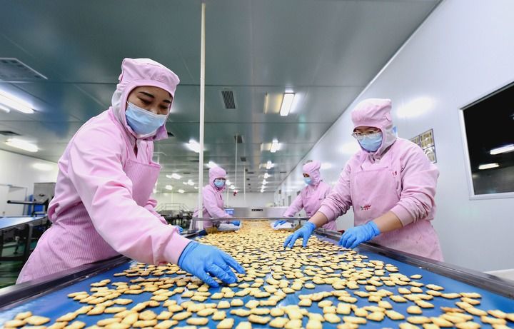 2月6日,在河北邱县一家食品加工企业,工人在生产车间工作。新华社记者 王晓 摄