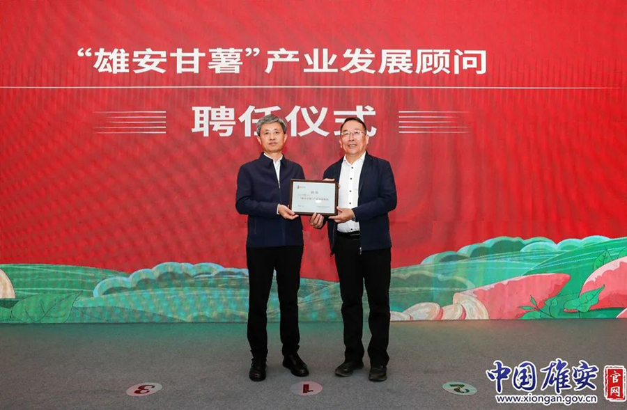 聘任国家甘薯产业技术体系首席科学家李强(右)为“雄安甘薯”产业发展顾问。中国雄安官网李鑫 摄