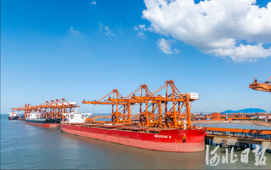 9月6日,河北港口集团曹妃甸矿石码头一片繁忙景象。(河北日报资料片)记者赵杰 摄