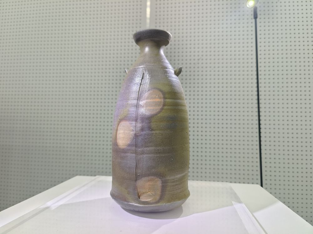 日本备前烧陶瓷作品展示。(新华社记者杜一方 摄)