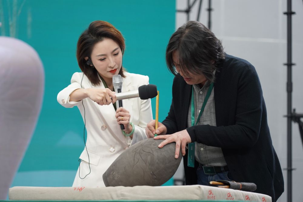作为国家级非物质文化遗产项目定瓷烧制技艺代表性传承人,中国工艺美术大师庞永辉现场表演定瓷刻花工艺,生动展现定窑的艺术性与独创性。“定瓷的白是绚烂到极致后又归于平淡的一种素,既单纯又有厚度,从中可以窥见中华文明的历史积淀。”他说。