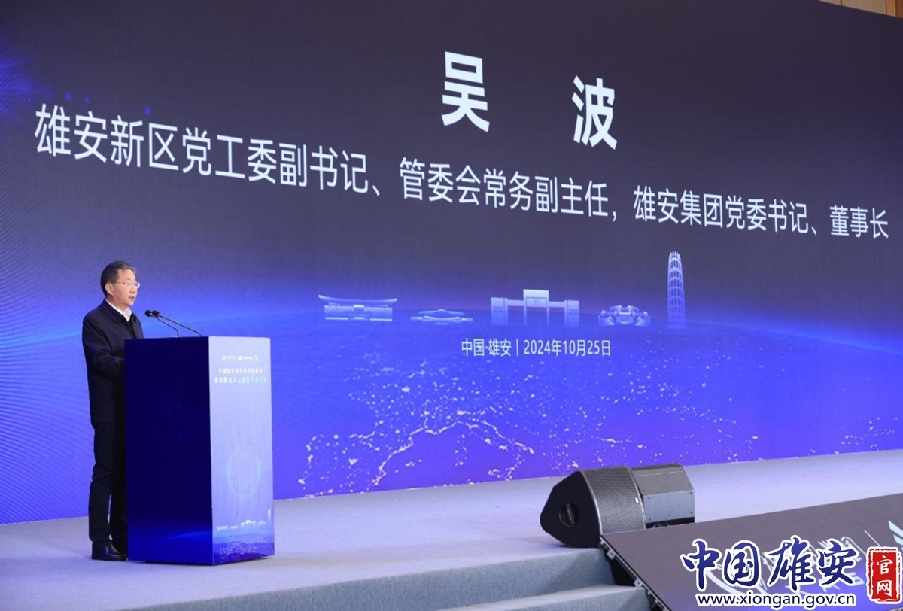 活动现场,雄安新区党工委副书记、管委会常务副主任,雄安集团党委书记、董事长吴波致辞。科学园管委会供图