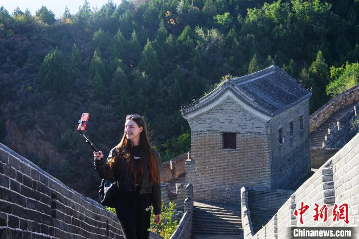 10月15日,乌克兰留学生娜斯佳在金山岭长城拍照留念。梁志青 摄