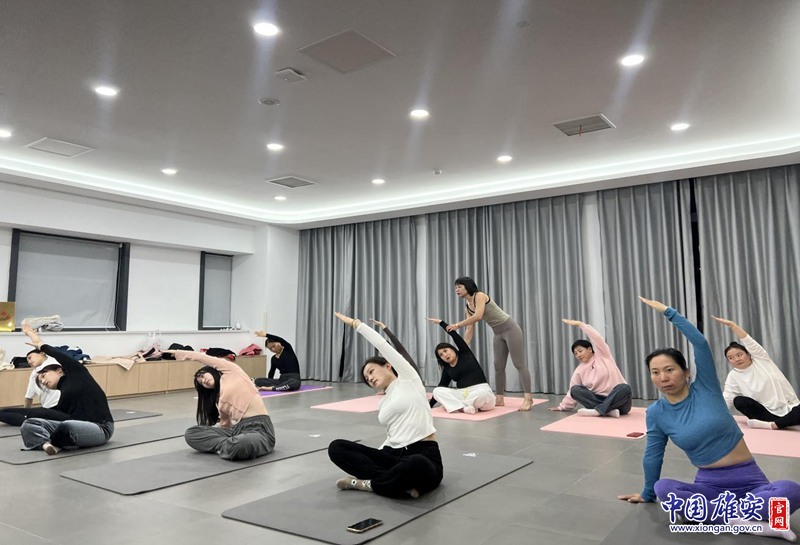 学员们跟着老师学习瑜伽。中国雄安官网发