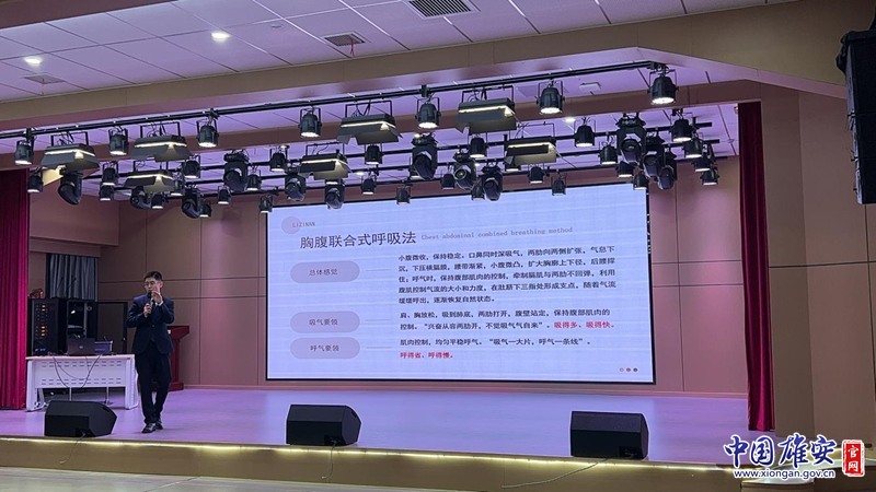 老师为学员们讲解胸腹联合式呼吸法。中国雄安官网发
