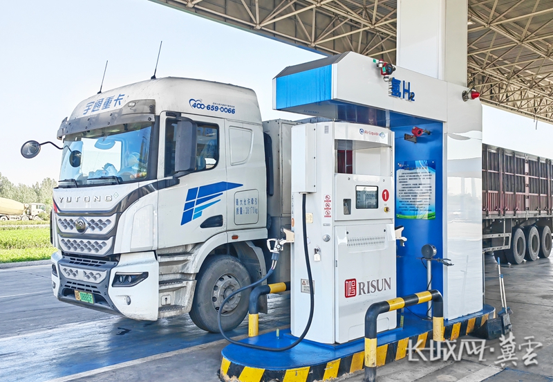 一辆氢能重卡在旭阳综合能源站补充氢燃料。长城网·冀云客户端记者赵绅光 摄